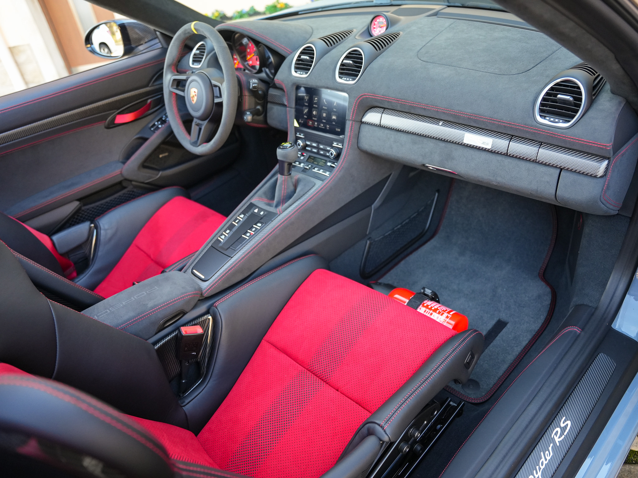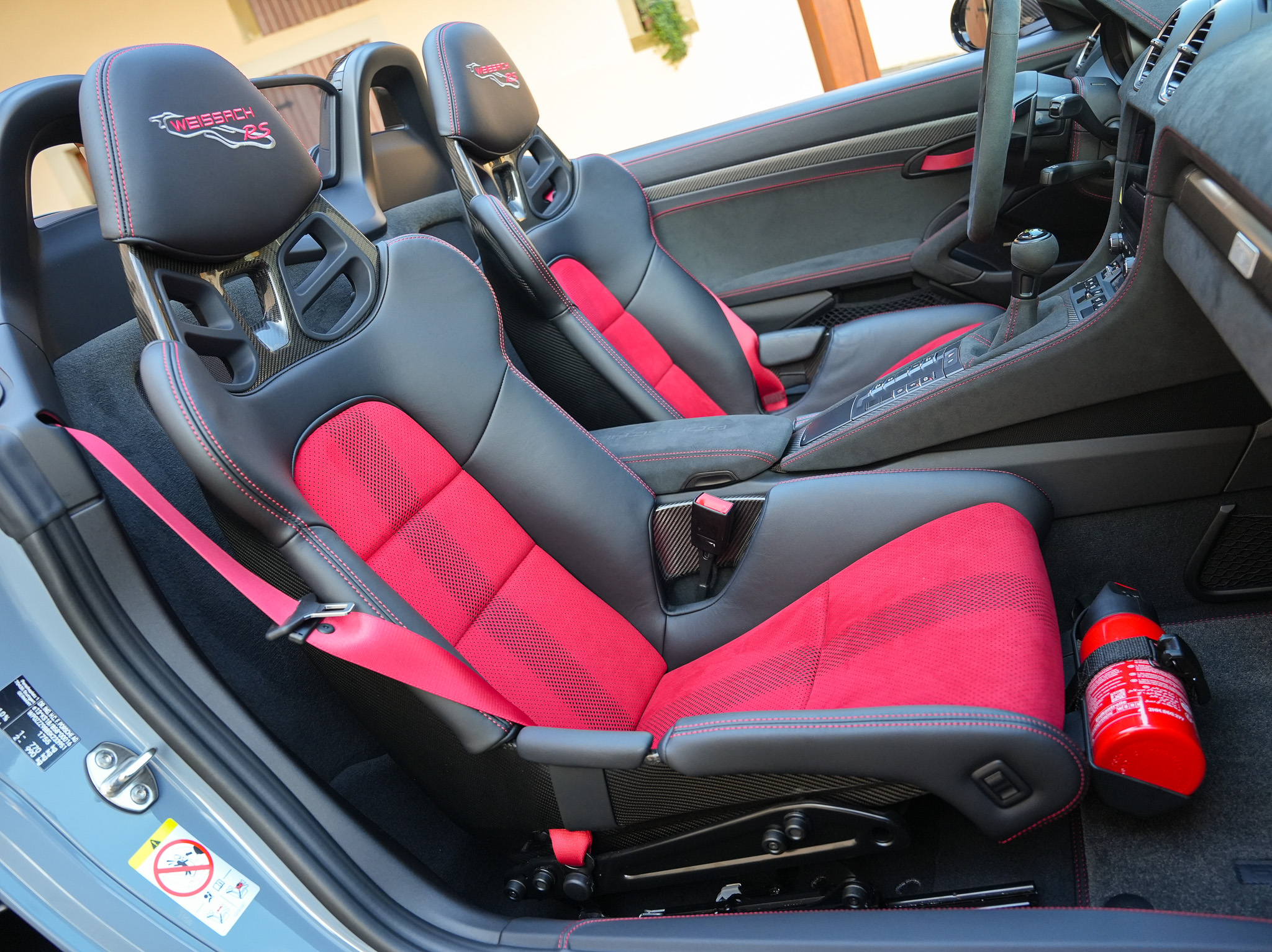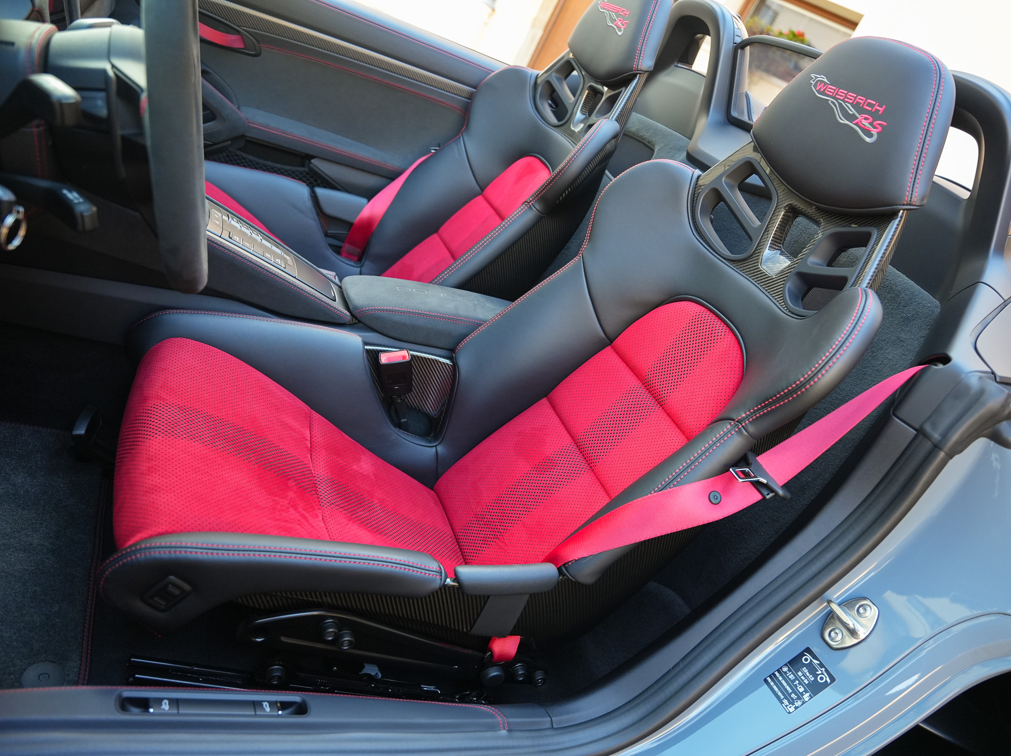 Sellerie : 63 Pack Weissach avec cuir étendu et Race-Tex en Noir / Rouge Carmin
