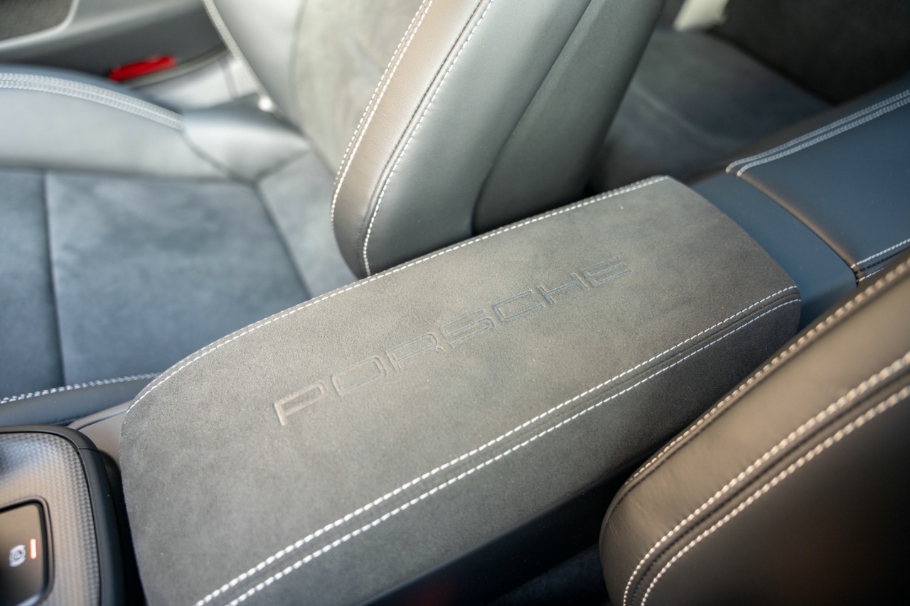 • 6E4 Accoudoir central en Race-Tex avec logo “PORSCHE”
